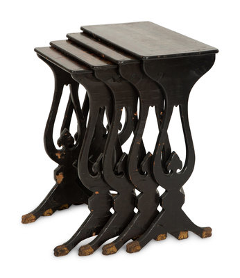 A Set of Four Victorian Chinoiserie Lacquered Nesting Tables