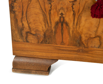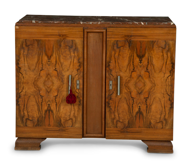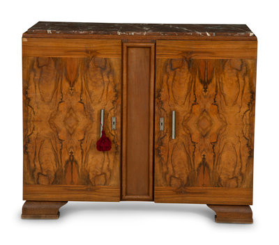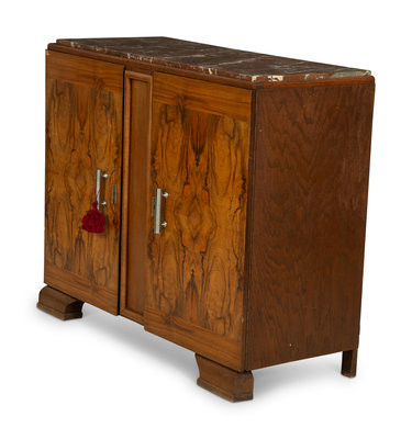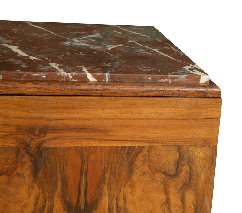 An Art Deco Style Burl Walnut Marble-Top Serving Cabinet