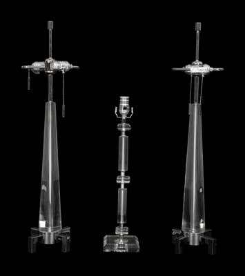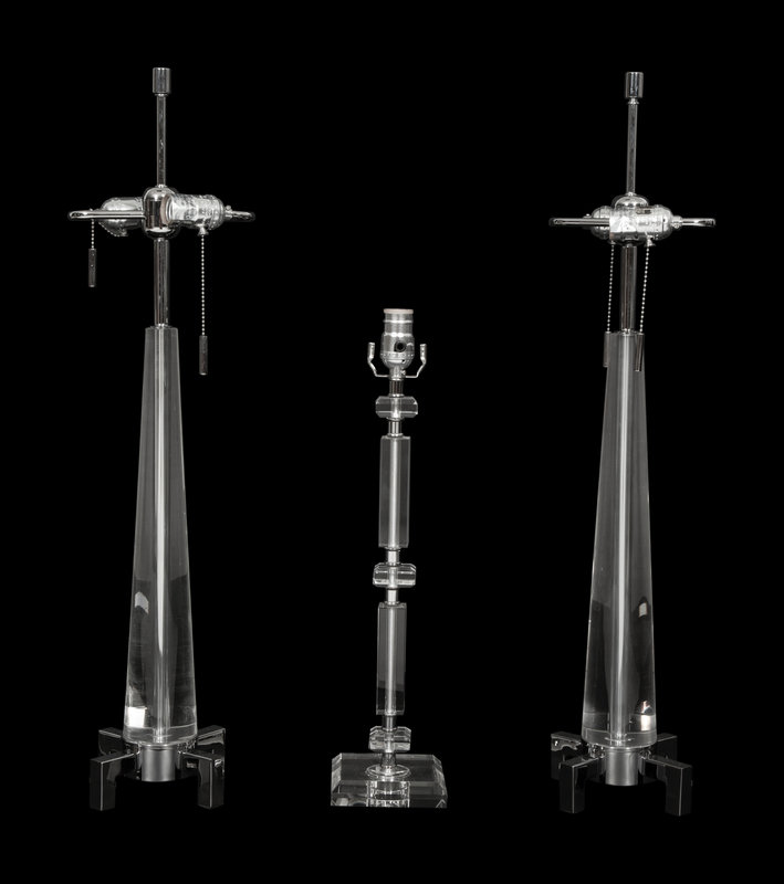 A Pair of Acrylic and Chrome Table Lamps and Another Single Table Lamp