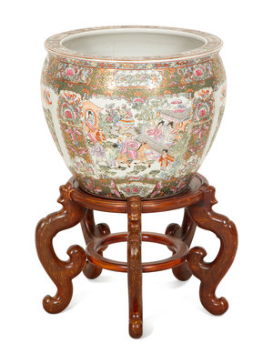 A Chinese Famille Rose Porcelain Jardinière on Stand