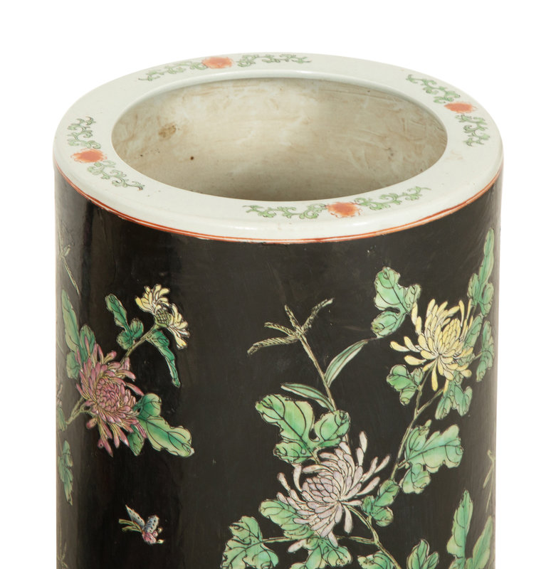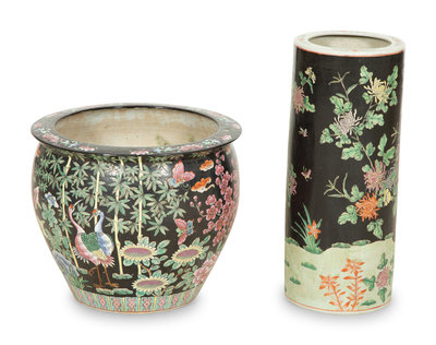 A Chinese Famille Noire Umbrella Stand and Jardinière
