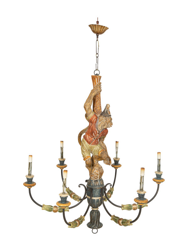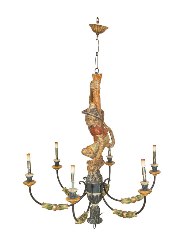 An Italian Painted Composition Six-Light Monkey Chandelier