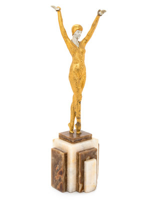 Overall height 14 inches, bronze figure 9 3/4 inches.