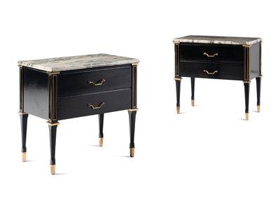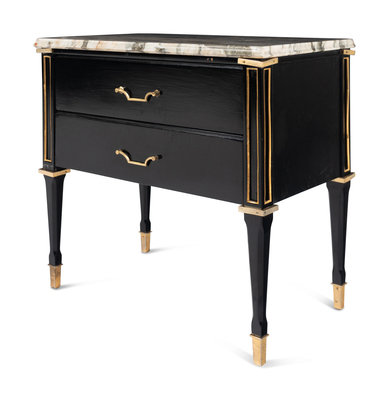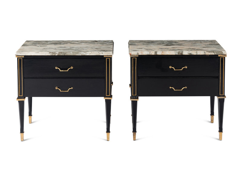 A Pair of Gilt Metal Mounted Ebonized Side Chests or Bedside Tables in the Style of Maison Jansen