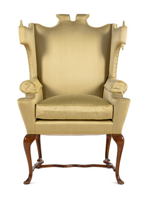 A Queen Anne Style Walnut Wing Chair