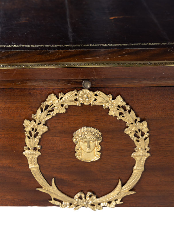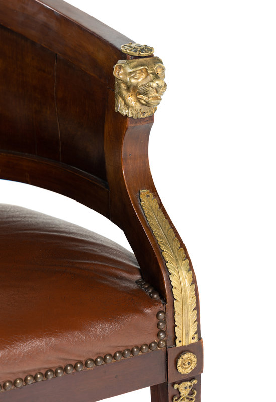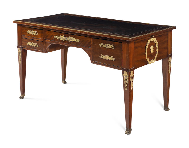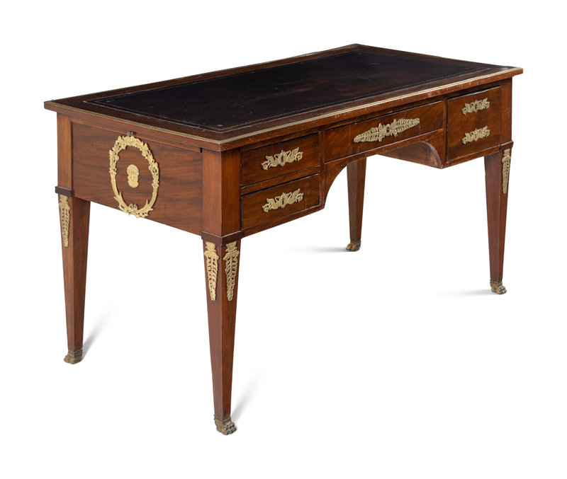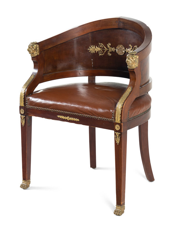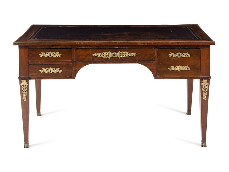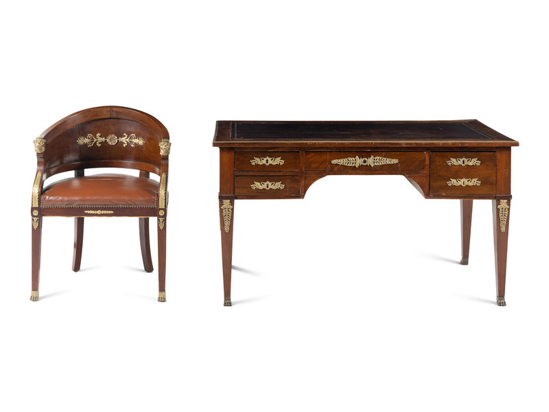 An Empire Style Gilt Metal Mounted Mahogany Bureau Plat and an Associated Armchair