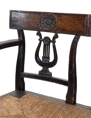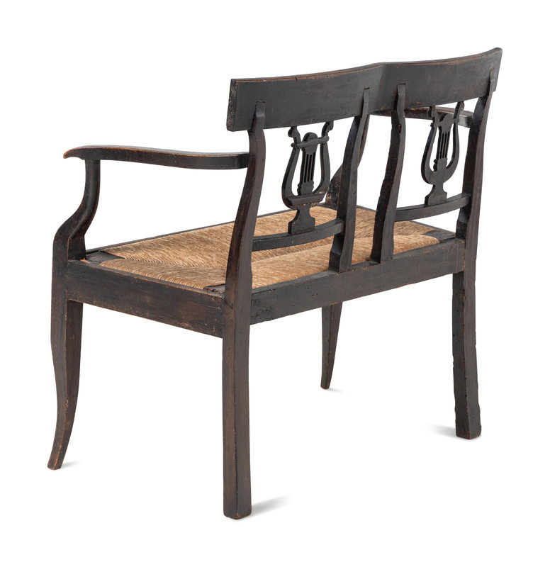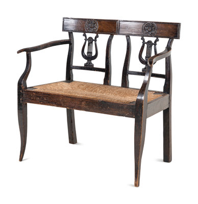 A Provincial Walnut Double Lyre-Back Bench