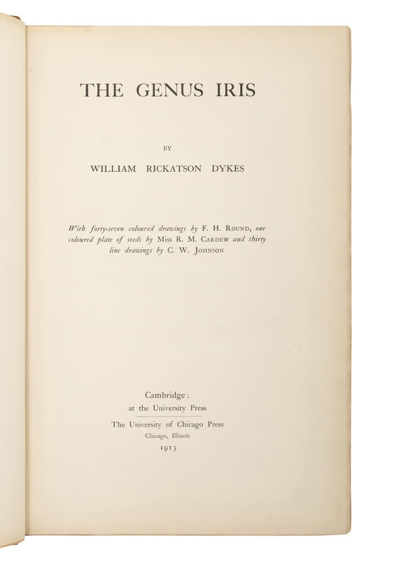 DYKES, William Rickatson (1877-1925). The Genus Iris. Cambridge & Chicago: University Press & The University of Chicago Press, 1913.