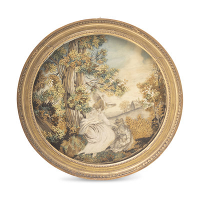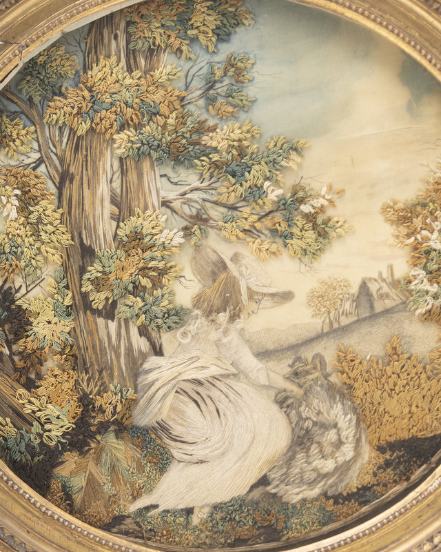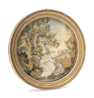 An English Needlework Picture of a Lady with a Dog