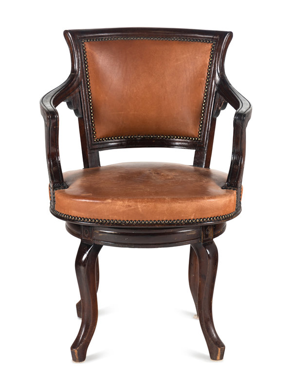 A Directoire Style Leather-Upholstered Swiveling Armchair