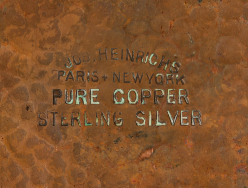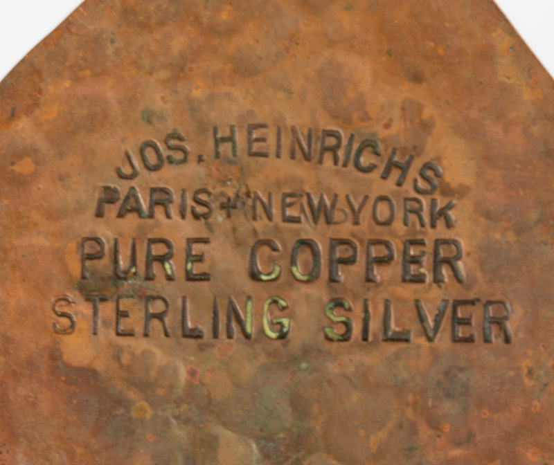 marked Jos. Heinrichs / Paris + New York / Pure Copper / Sterling Silver on the base of both.