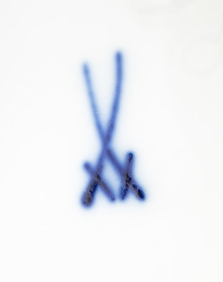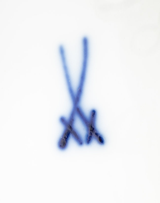 bearing crossed swords in underglaze blue and impressed and incised D86 and 756(?) to the underside.