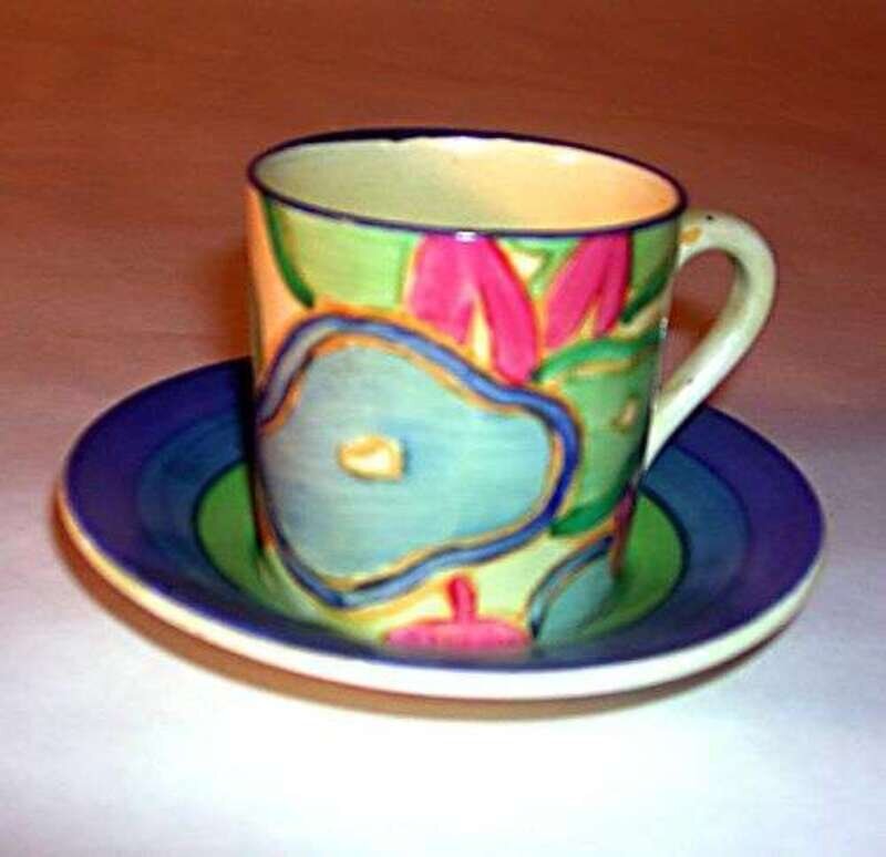 CLARICE CLIFF 'BLUE CHINTZ' DEMITASSE CUP AND SAUCER