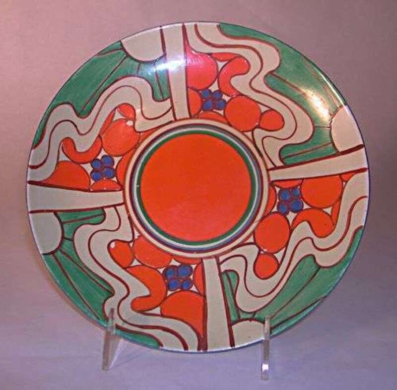 Painted & glazed ceramic; dia: 8 3/4 in.