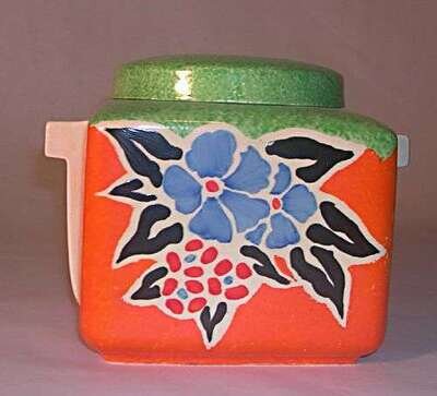 CLARICE CLIFF GREEN FLORAL 'NUAGE' BISCUIT JAR