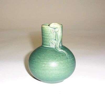 Thrown, applied & glazed ceramic; unmarked, h: 5 1/8 in.