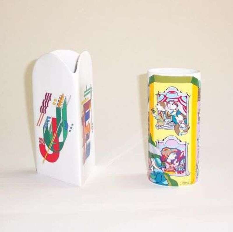 Glazed porcelain; one designed by Bjorn Winblad, the other by Marcelli Morandini; hts: 8, 9 1/4 in.