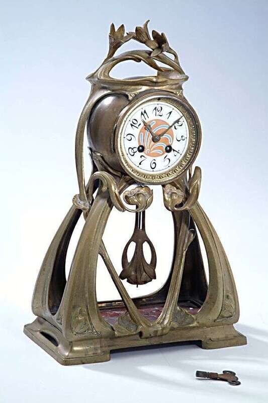 Brass, marble, enamel, mixed metals, h: 17 in.