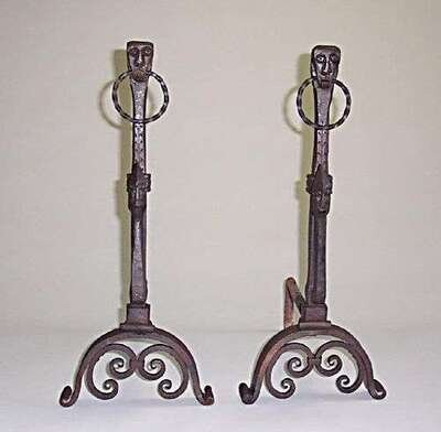 ARTS & CRAFTS WROUGHT IRON ANDIRONS