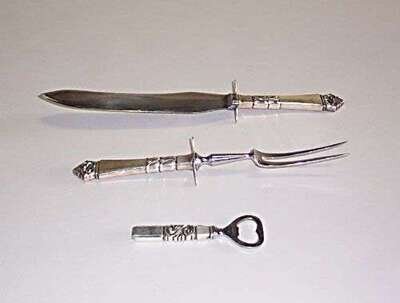 Sterling silver, steel; including a Georg Jensen bottle opener and a Frigast knife & fork carving set; stamped marks to each.