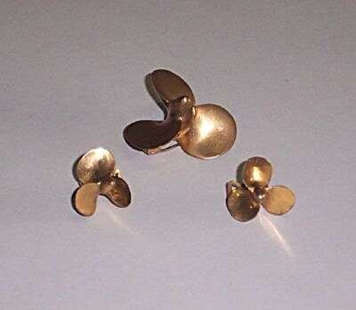 Bell metal; brooch & pair earrings made of small propellors, brooch pin stamped DEPOSE.