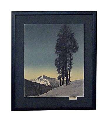 Color etching on silk; signed in pencil, framed & matted, sight: 13 3/4 x 17 in.