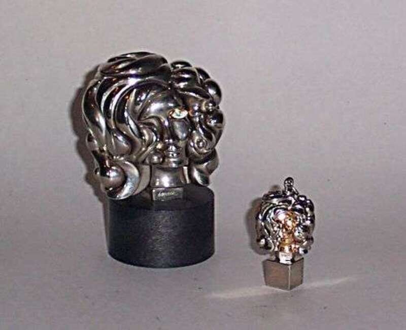 Polished metal; two pieces, one titled "Portrait de Michele," numbered 02656, h: 4 in.; the other a smaller version of the same work titled "Micheline X" (1975-76) h: 2 in.; both stamped with artist's name and include original boxes with instructions.