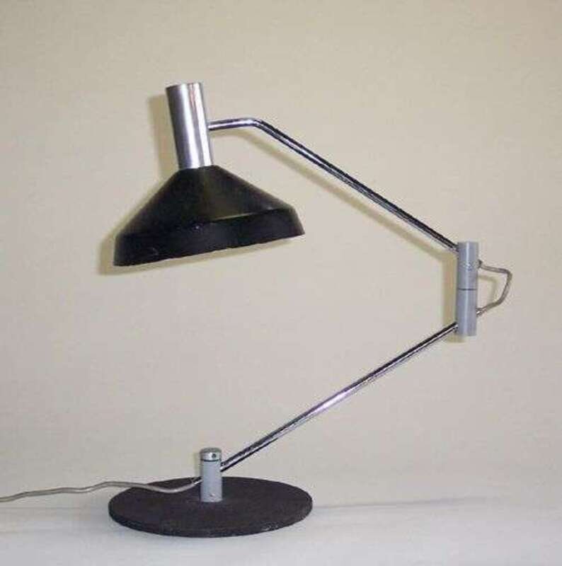 Chromium, steel, plastic; adjustable shade & arm.