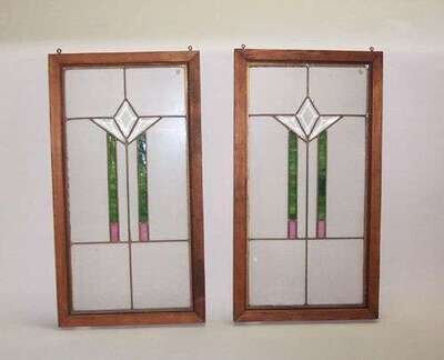 PAIR PRAIRIE SCHOOL LEADED GLASS WINDOWS