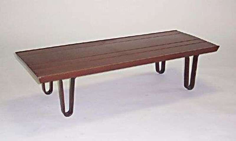 Mahogany, bentwood; green metal tag, h: 11 /12, l: 48, w: 19 in.