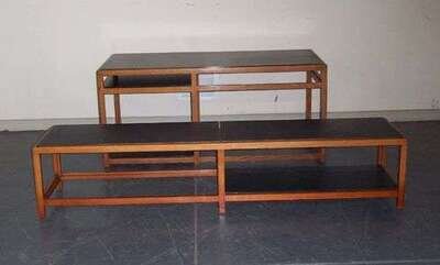 Oak, Formica; green Dunbar tag to each; one h: 24, l: 53 1/2, w: 23, the other h: 15, l: 72, w: 15 1/2 in.