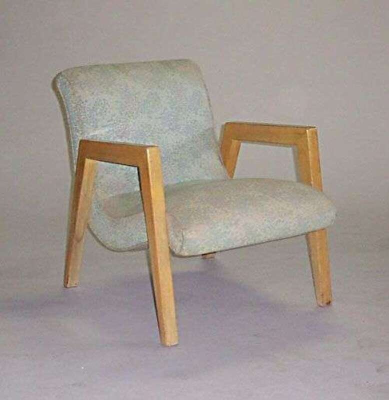 Wood, upholstery; h: 29 1/2, w: 24, d: 34 in.