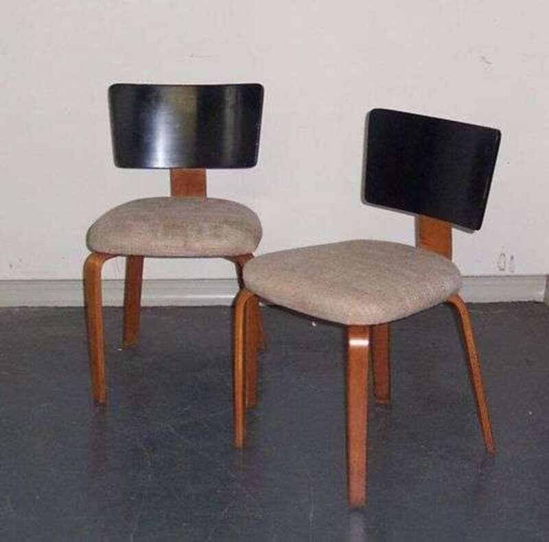 Birch plywood, upholstery. one back support repaired[?], each h: 30 in.