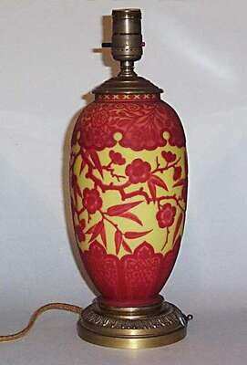 Cased & wheel cut glass; base drilled & mounted on a bronze plinth, height of glass: 9 in.