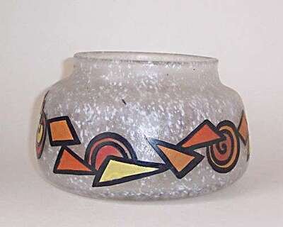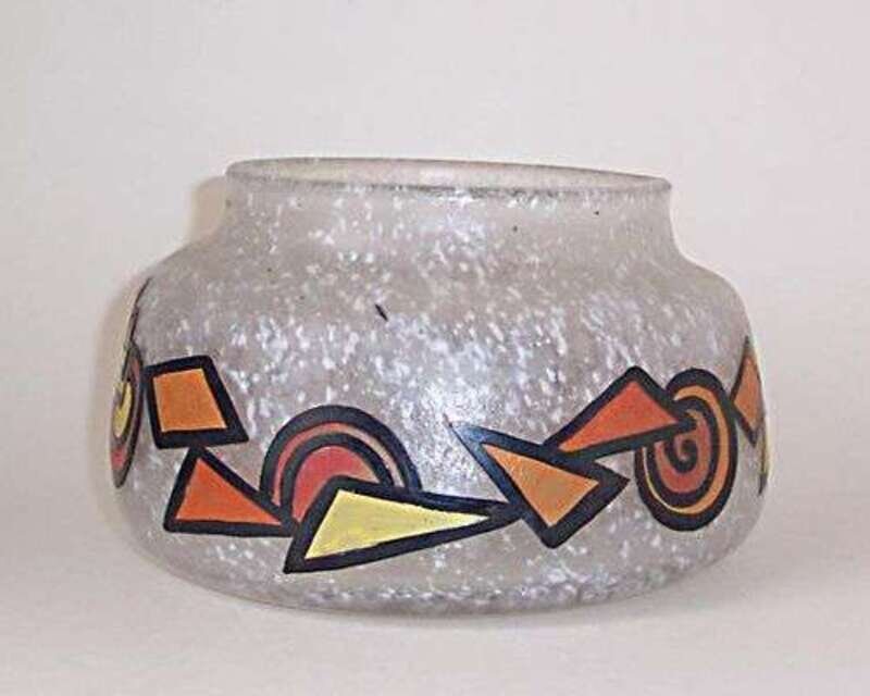Blown, etched & painted glass; cameo painted signature, internal chip to base, h: 5, dia: 8 in.