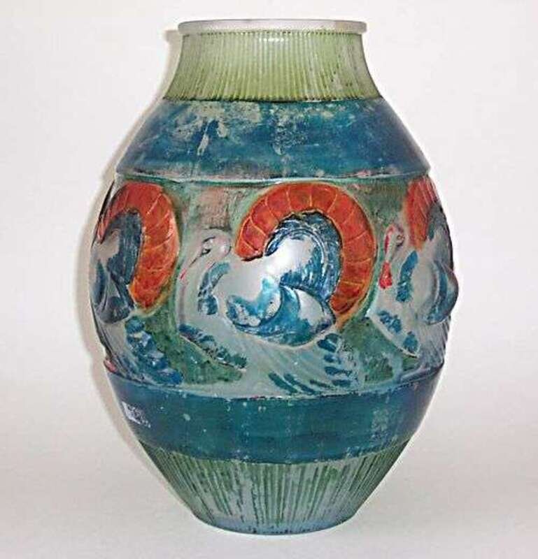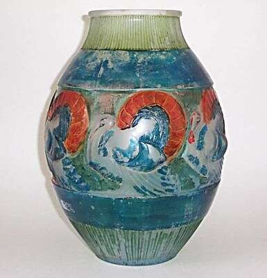 Molded & painted glass; engraved "Sabino Paris", flaking to paint overall, h: 13 3/4 in.