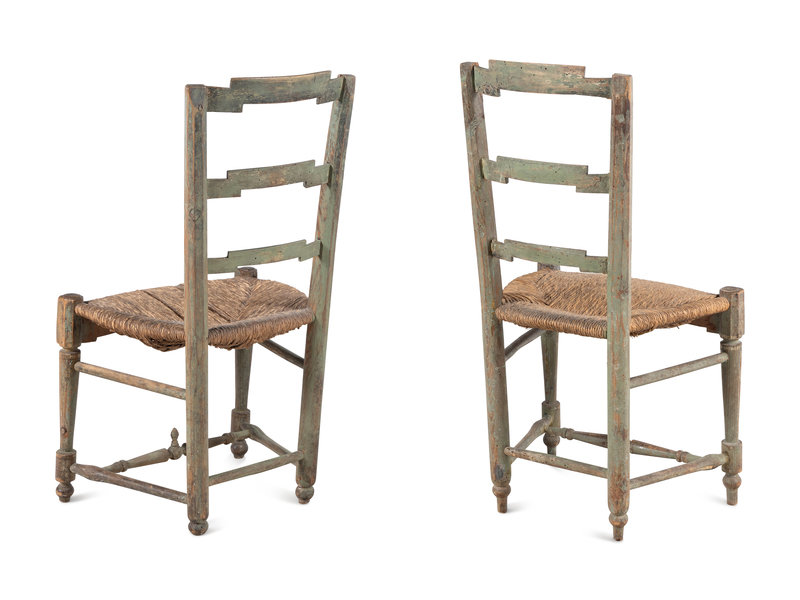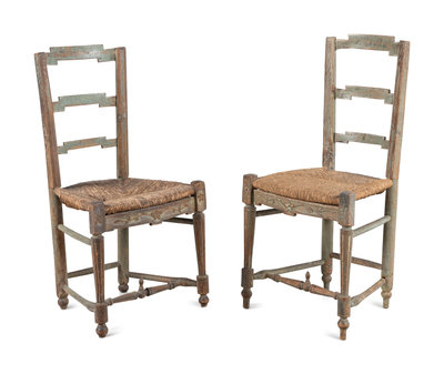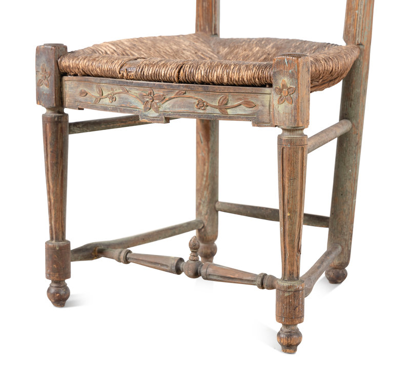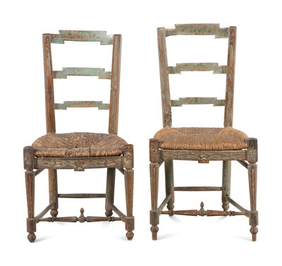 A Pair of French Carved and Painted Rush Seat Side Chairs
