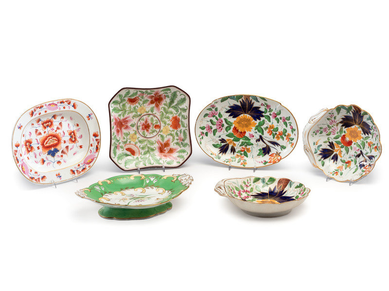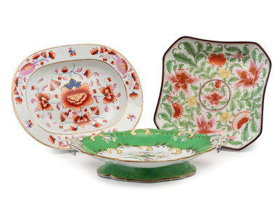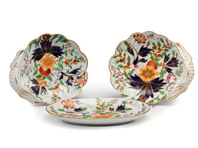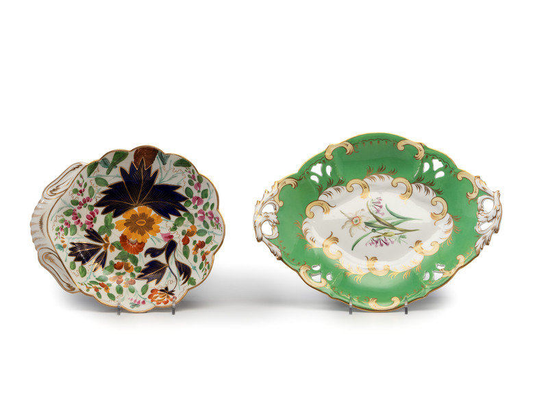 together with an early 19th century Royal Crown Derby oval dish, and a pierced and footed dish.
