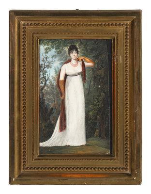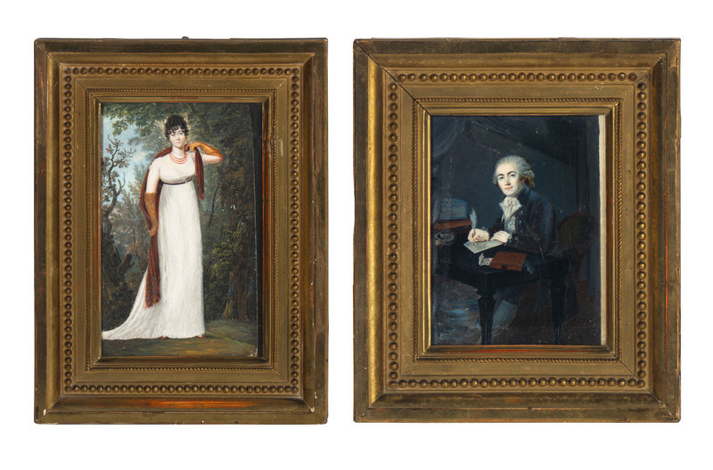 Two Reverse-Painted Glass Portraits of Madame and Monsieur Enfantin