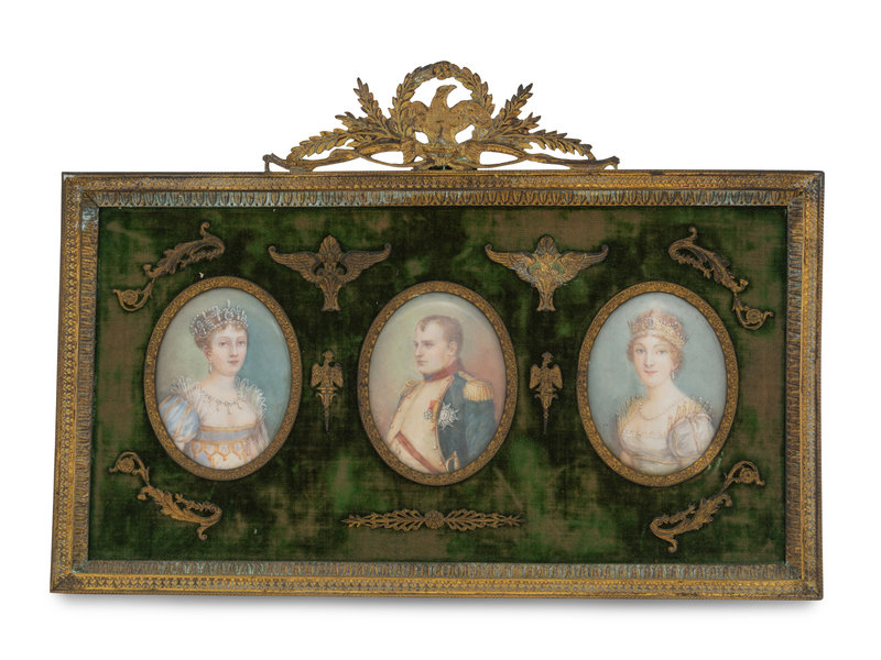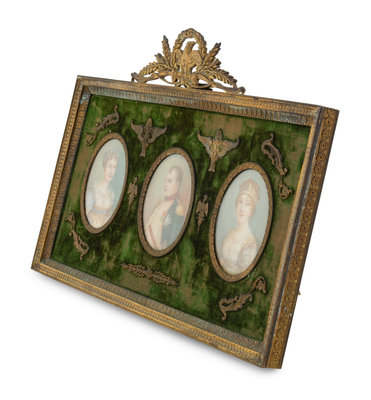 Three Napoleonic Portrait Miniatures in a Gilt Bronze Frame