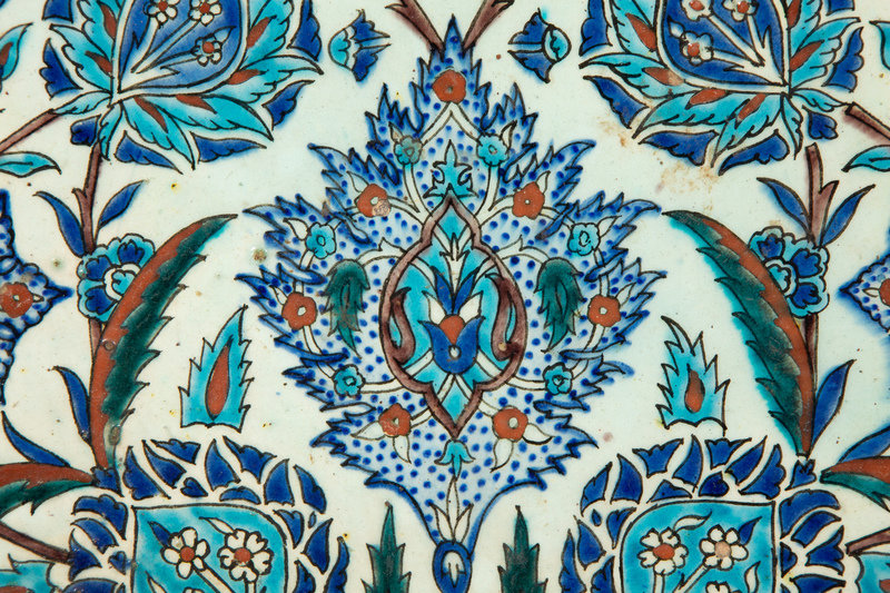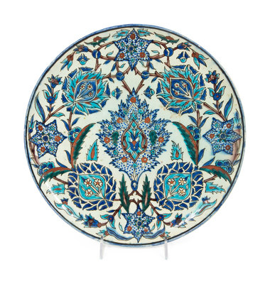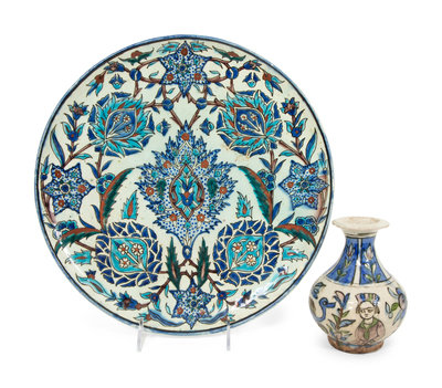 An Islamic Iznik Glazed Pottery Plate and a Small Vase