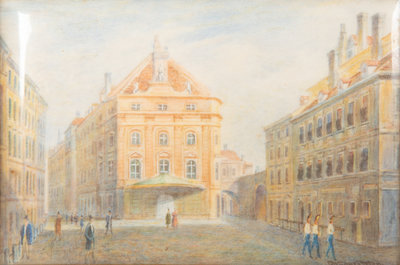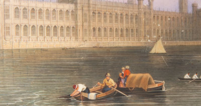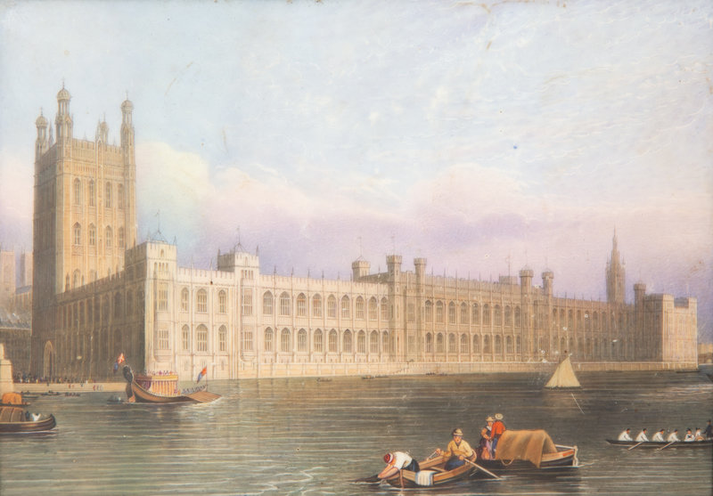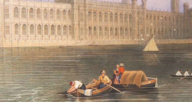 one on porcelain depicting the Houses of Parliament and the River Thames there other on celluloid depicting a European street scene.
