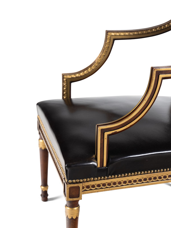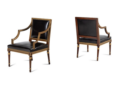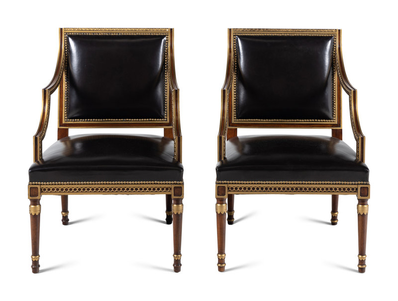 A Pair of Neoclassical Style Parcel Gilt Mahogany Armchairs