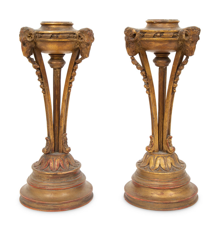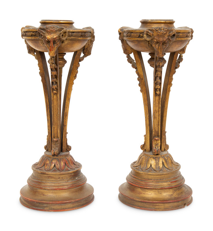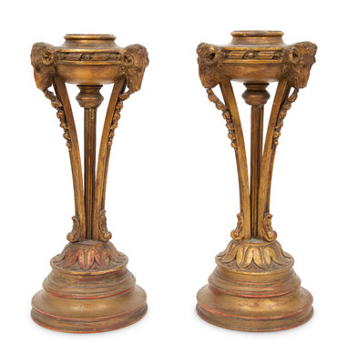A Pair of Regency Style Carved Giltwood Torchere Lamp Bases
