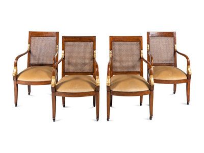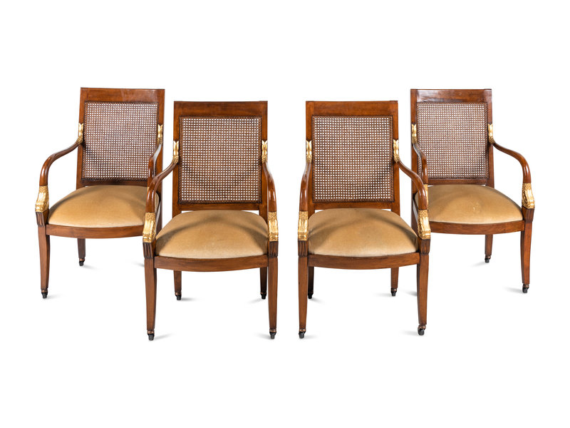 A Set of Four Baltic Style Parcel Gilt Walnut Armchairs