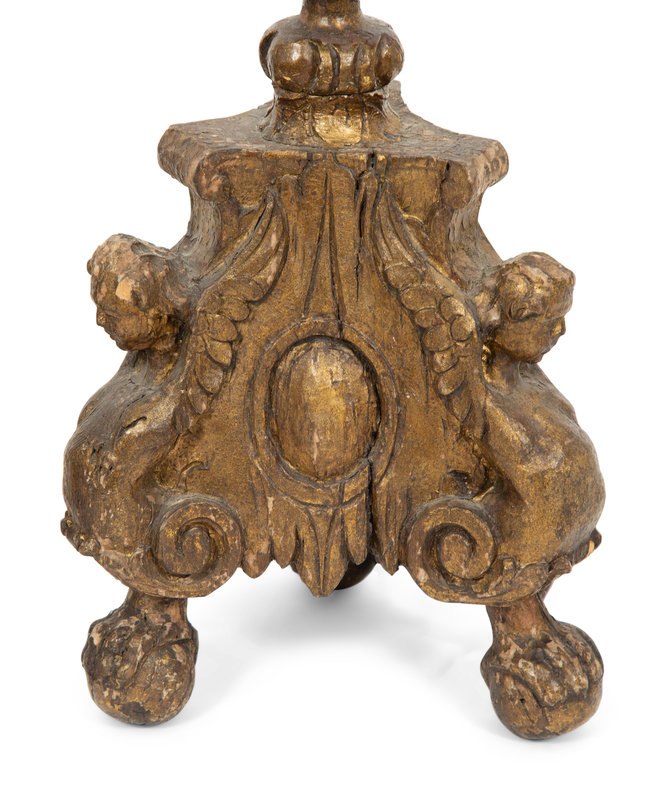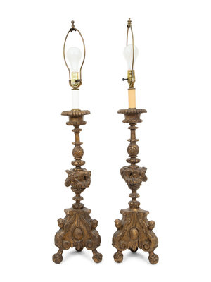 A Pair of Pricket Style Giltwood Table Lamps