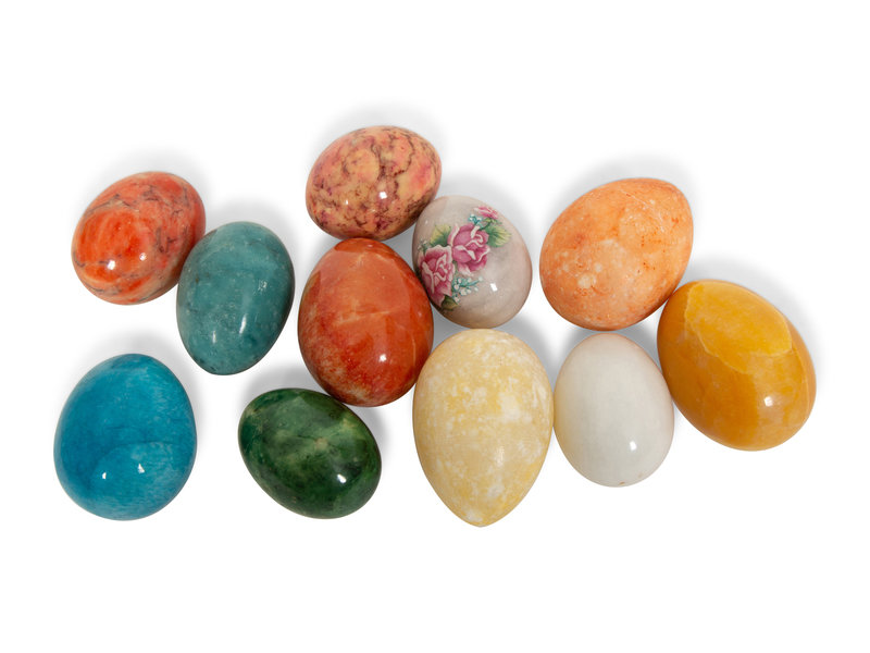 A Collection of Eleven Marble, Alabaster and Onyx Eggs