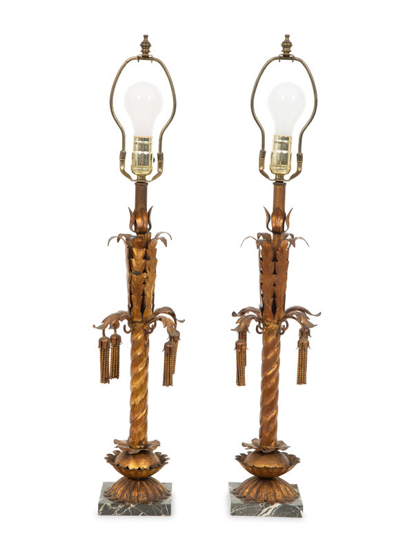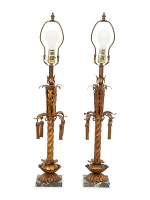 A Pair of Gilt Metal Palm Tree Table Lamps
