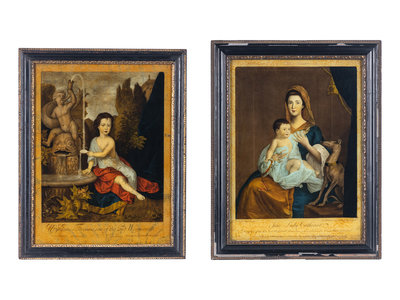 A Pair of English Mezzotints on Glass