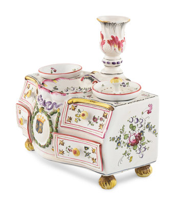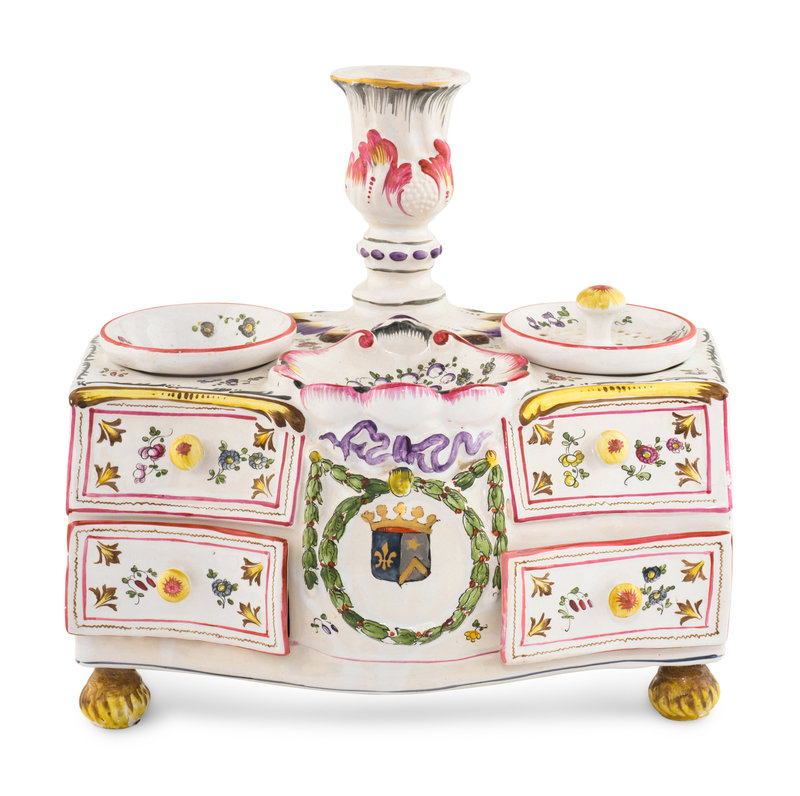 Height of inkstand 7 1/2 x width 8 1/4 x depth 5 1/2 inches.
